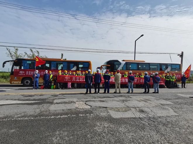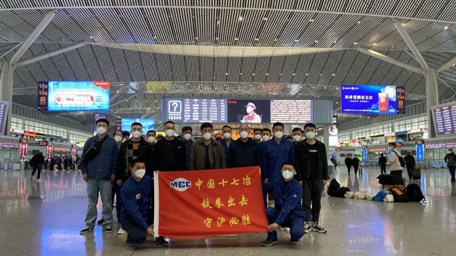 4月13日下午5點十七冶首批施工隊伍出發(fā)