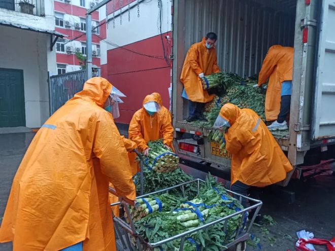 3月31日,在上海市疫情防控的吃勁階段和關鍵時刻,中國十七冶集團緊急馳援上海寶山區(qū)3萬余斤蔬菜全部抵達。