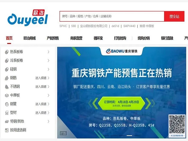 有購(gòu)買意向的用戶可注冊(cè)登錄歐冶平臺(tái)(www.ouyeel.com),進(jìn)入“重慶鋼鐵歐冶商城店”進(jìn)行購(gòu)買。