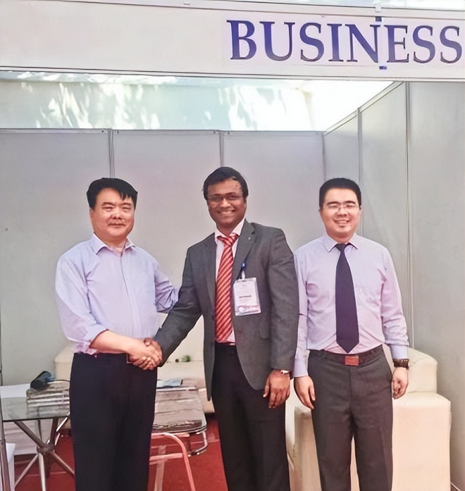 在國際冶金工業展覽會上與外賓合影。左為豫興公司董事長劉世聚,右為豫興公司總經理劉力銘。