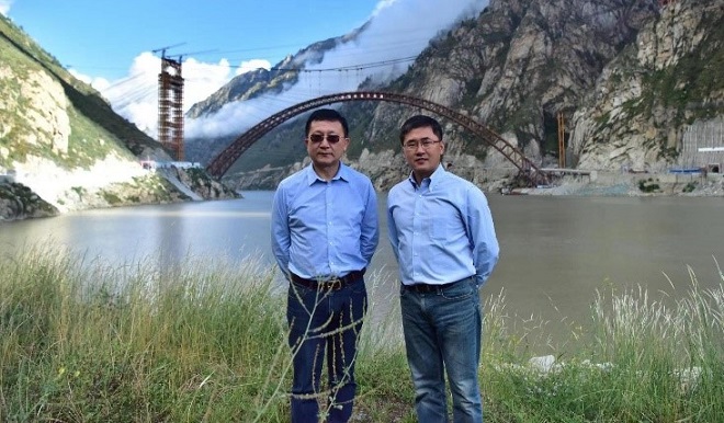 圖一 中國(guó)著名橋梁鋼專(zhuān)家中信金屬公司副總經(jīng)理兼總工程師郭愛(ài)民博士(左)和本文作者王厚昕博士在中國(guó)耐候鋼橋第一座里程碑——西藏拉林藏木鐵路耐候鋼橋前留影。