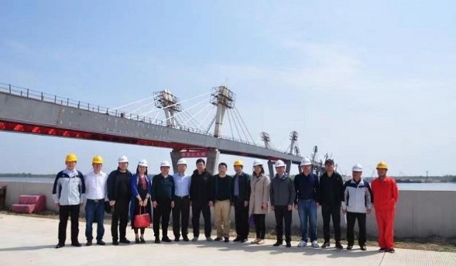 圖四 國(guó)內(nèi)橋梁鋼專(zhuān)家在黑河大橋旁留影。