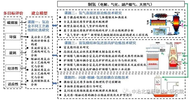 一、課題以“基礎(chǔ)理論—成套技術(shù)—解決方案—項目設(shè)計—工程示范”為總體思路,構(gòu)建最佳綠色低碳氫冶金工藝路線,并形成以碳素流為主因素的多目標低碳工藝評價體系。
