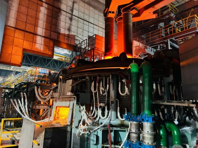 本項目的投產也是國家科技進步二等獎的又一次應用推廣。本套電弧爐煉鋼系統,裝載了“CISDI-DMI-AC數字式EAF/LF爐智能電極調節系統”及“CISDI-SCDF階梯擾動水平連續加料”等中冶賽迪自主創新的核心技術裝備,廢鋼在階梯擾動水平連續加料的運行速度達到了7.8m/min。該電弧爐的高溫煙氣余熱發電也在實施中。這些以“綠色、高效、低耗”為中心思想的技術,將助力都鋼實現綠色節能減排的高質量發展目標。