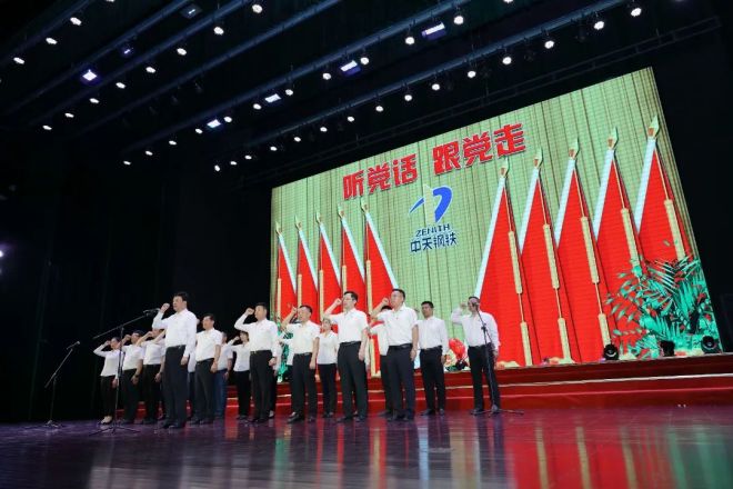 集團董事局主席、總裁黨委書記董才平帶領黨委委員重溫入黨誓詞(陳明 攝)