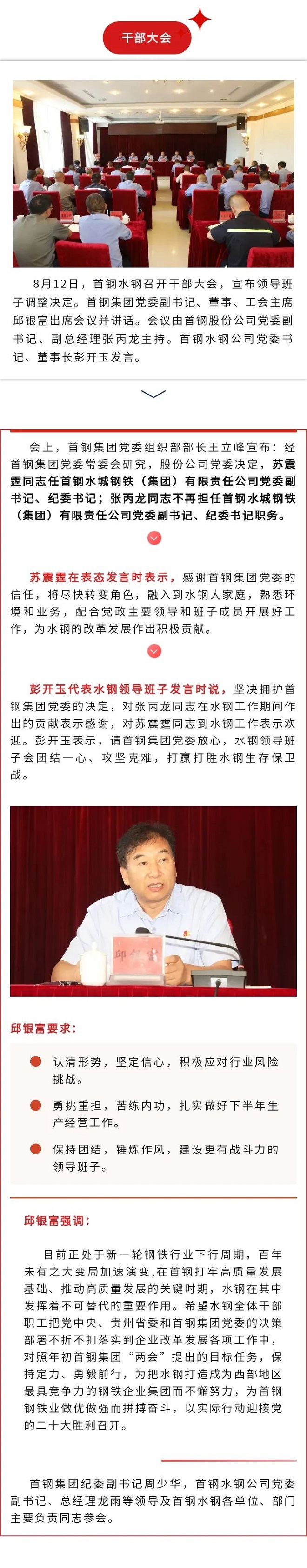 首鋼水鋼召開干部大會宣布領導班子調整決定