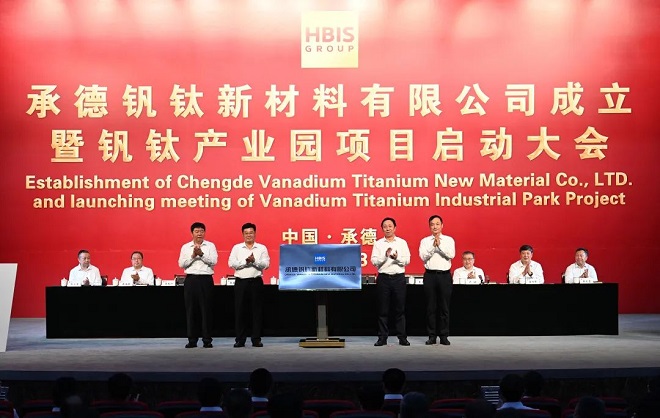 8月18日,承德釩鈦新材料有限公司(以下簡稱承德釩鈦)成立暨釩鈦產業園項目啟動大會在承德召開。這是河鋼認真貫徹習近平總書記視察承德重要講話精神、奮力開創高質量發展新局面的深入實踐,堅定落實省委十屆二次全會精神、積極推動我省從原材料大省向新材料強省轉變的具體行動,對推進我國乃至世界釩鈦產業高質量發展具有十分重要的意義。河鋼集團黨委書記、董事長于勇,承德市委書記柴寶良分別致辭,并共同為承德釩鈦揭牌。河鋼集團總經理王蘭玉、承德市長王亞軍出席儀式并一同揭牌。