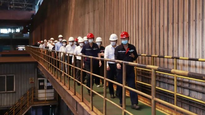 簽約儀式前,曲德福書記一行參觀了新天鋼集團工業互聯網運行中心,天鋼公司煉鐵廠2號高爐、中厚板生產車間、超高溫亞臨界煤氣發電站、游客接待中心、企業文化展廳。
