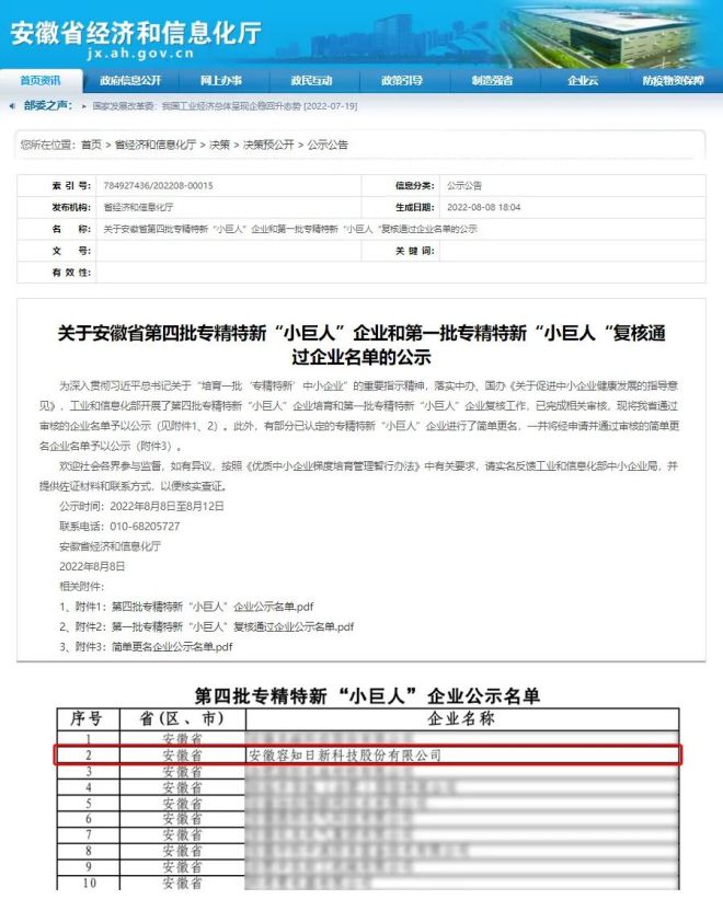 近期,第四批國家級專精特新“小巨人”企業名單已公示完畢,容知日新憑借技術創新、產品研發、拓展潛力等多方面優勢,成功獲評國家級專精特新“小巨人”企業。
