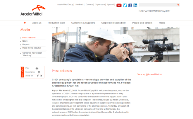 ▲ 安賽樂米塔爾集團稱贊中冶賽迪“鋼鐵行業(yè)工程項目實施的全球領(lǐng)導(dǎo)者之一”