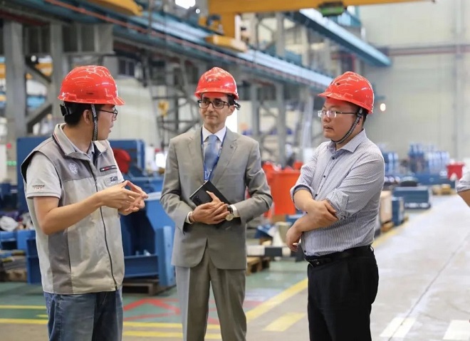 會后,孫瑨一行參觀了達涅利中國的生產(chǎn)車間,系統(tǒng)地了解了達涅利中國生產(chǎn)車間的管理模式和生產(chǎn)流程,對達涅利中國的生產(chǎn)管理和技術(shù)專業(yè)化表示高度贊賞。