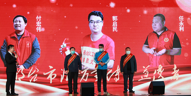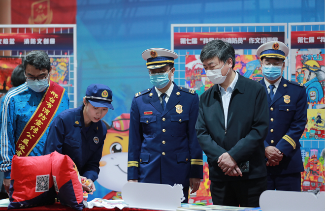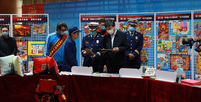 活動中,還對全市消防宣傳“五個一百”示范場所評比情況進行了公布,邀請3名消防宣傳公益使者進行了現場互動,并分別為消防宣傳公益使者頒發了聘書,為全市企業、社區、學校、農村消防宣傳示范場所代表頒發了獎牌。