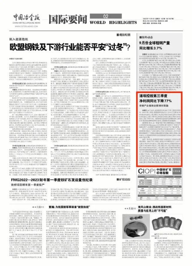浦項控股表示,這一季度利潤下降主要原因是,9月初該公司受欣納諾(Hinnamnor)臺風影響,旗下浦項工廠多條生產線被迫停產,全球鋼材價格持續下跌也對其產生了部分影響。