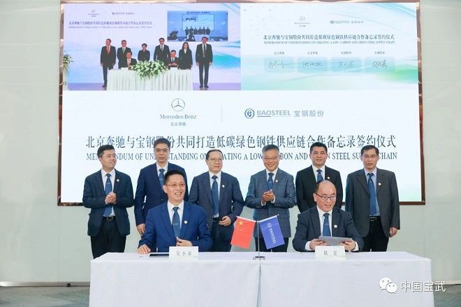 擁抱低碳新賽道,共赴凈零碳未來。11月22日上午,寶鋼股份與北京奔馳以“云簽約”方式正式簽署《打造低碳綠色鋼鐵供應鏈合作備忘錄》,致力于在整車制造過程中使用更加綠色的原材料,共同打造低碳綠色汽車鋼鐵供應鏈。《備忘錄》明確了具體減碳技術路徑,并有真正落地的詳細計劃與措施。由此,寶鋼股份成為最早可向車企提供具有明確減碳值產品的中國鋼企。本次戰略合作將促進雙方在推動全產業鏈和全生命周期的低碳減排,實現跨領域協同減碳,共同邁向綠色可持續未來,攜手為應對全球氣候變化作出實質貢獻。