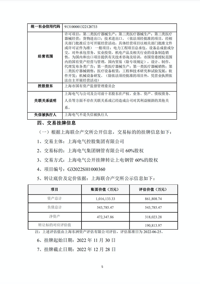 從《公告》中獲悉,11月30日,上海電氣掛牌轉讓這部分股權,底價約19.08億元。中信泰富特鋼集團股份有限公司擬競買上海電氣集團鋼管有限公司60%股權。