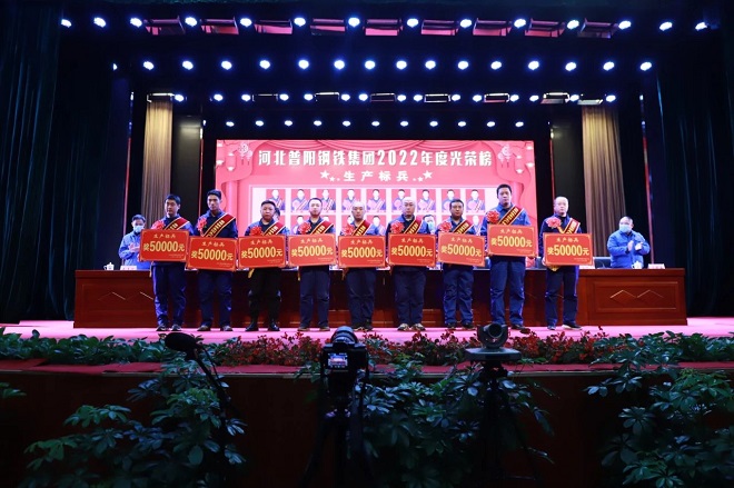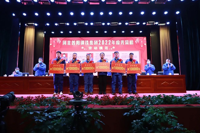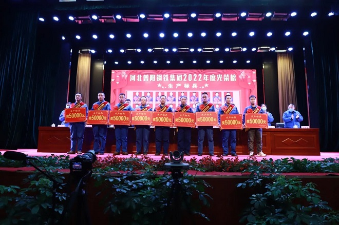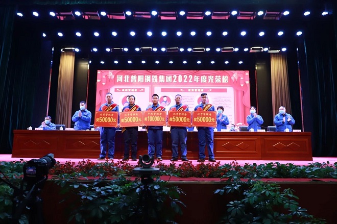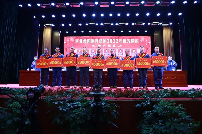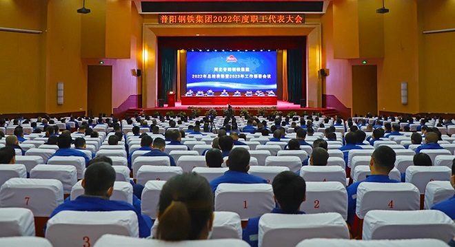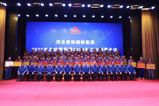 1月15日16時整,河北普陽鋼鐵集團召開2022年總結表彰暨2023年工作部署會議。主會場設在文化中心千人禮堂,河北普陽鋼鐵集團下屬子公司烘熔鋼鐵、峰峰新彭楠、山西恒祥焦化、山西晉柳能源、日鑫板材、中普精密、北京普陽、普陽新材料、普陽房地產設分會場,觀看視頻直播。河北普陽鋼鐵集團黨委書記郭恩元、董事長郭龍鑫、總經理石躍強及經理班子成員在主席臺就座。各子公司總經理、各廠廠長副廠長、部長副部長、科長,先進單位代表、先進集體代表,卓越管理者、優(yōu)秀管理者、勞模標兵以及職工代表在主會場參會。