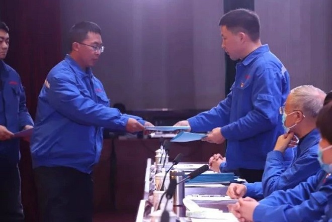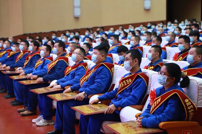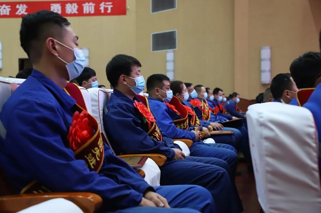 會議在莊嚴的國歌聲中拉開帷幕。會議對8個先進單位、53個先進集體、6名勞動模范、27名生產標兵、1名卓越管理者、4名優(yōu)秀管理者進行了現(xiàn)場表彰,集團領導向獲獎者頒發(fā)了獎牌。
