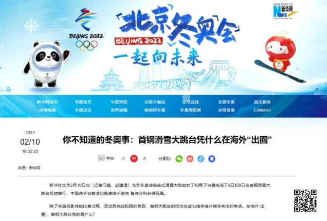 冬奧期間,海內外各大媒體對首鋼進行密集報道,盛贊首鋼之變,從2022年2月4日冬奧會開幕到2月16日首鋼滑雪大跳臺結束比賽的13天里,海內外各大媒體對大跳臺和首鋼園的各類報道累計達93000余條;從2021年10月26日冬奧會倒計時100天到冬殘奧會結束,累計各類媒體有關首鋼園的報道破紀錄地超過22萬條;首鋼園登榜“2022中國新時代100大建筑”,首鋼滑雪大跳臺和首鋼園成為“世界網紅地”。