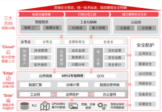 中信泰富特鋼集團(tuán)基于云邊端一體化的信息安全技術(shù)架構(gòu),強(qiáng)化云邊、云網(wǎng)、云管能力,通過云邊端協(xié)同,構(gòu)建融合開放、高效可靠的標(biāo)準(zhǔn)技術(shù)平臺,推動企業(yè)信息安全技術(shù)管控水平提升,以網(wǎng)絡(luò)態(tài)勢感知、一體化運(yùn)維監(jiān)管、網(wǎng)絡(luò)準(zhǔn)入控制、數(shù)據(jù)安全防護(hù)為核心開展“智能制造+安全防護(hù)”應(yīng)用示范。