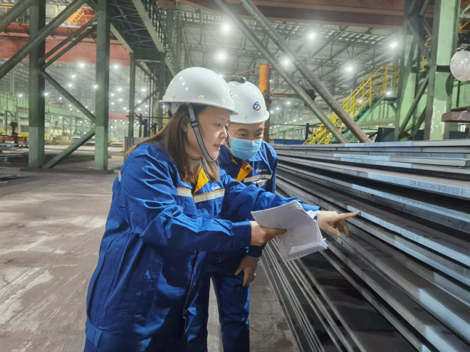 張帥還說道:“原來因交叉疊放原因,板材遇緊急合同時,需人工現場尋找產品,再由多個人工將該產品吊運翻堆出來,翻板量大,車輛裝載及待裝時間長,作業效率極低。”中厚板產品物流新系統上線后,實現了產品直接在線裝車到碼頭庫、鐵路庫進行分揀,有效提高了發運效率。