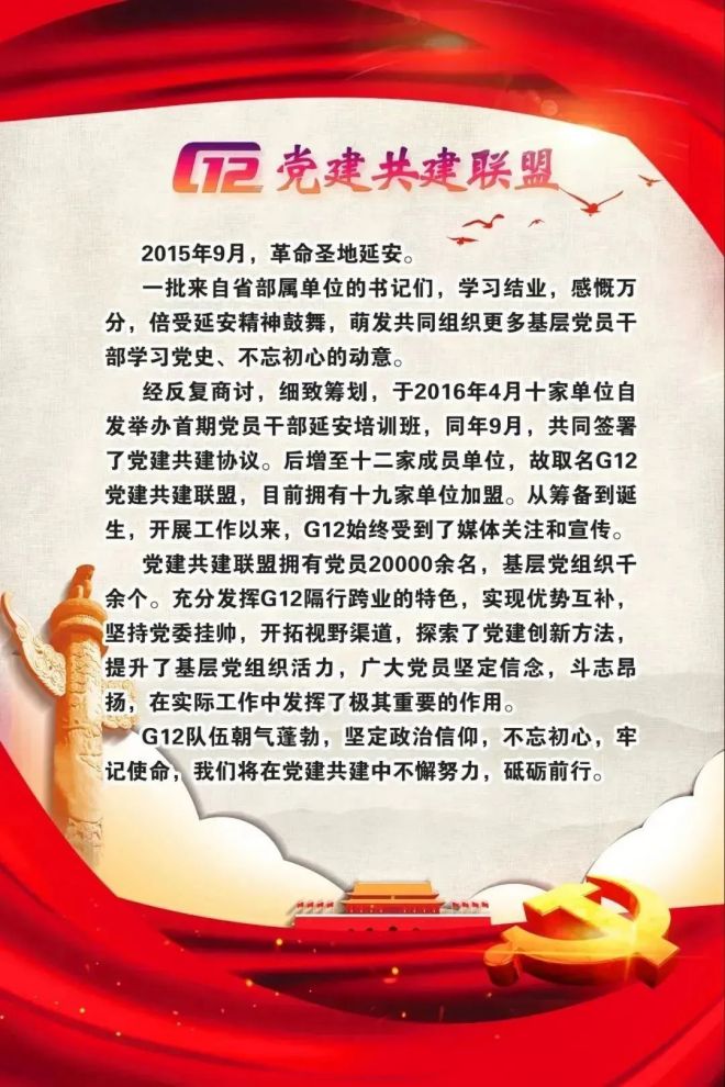 他說,G12黨建共建聯(lián)盟信念堅定、團結(jié)緊密、充滿活力、不斷創(chuàng)新、生命力強、反響很好,9年來不斷穩(wěn)步發(fā)展,得到廣泛支持、關注和愛護。