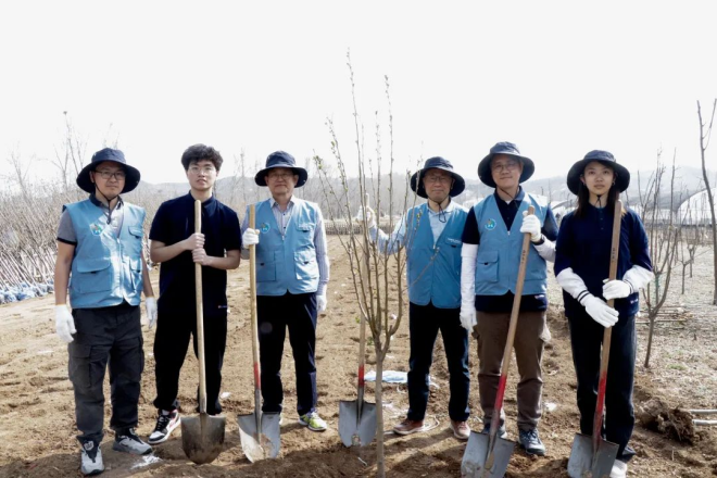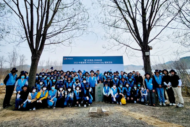 為紀念POSCO創立55周年,2023年3月31日,POSCO北京地區各法人于北京懷柔林下植樹基地聯合開展POSCO Green Day浦項林植樹活動。
