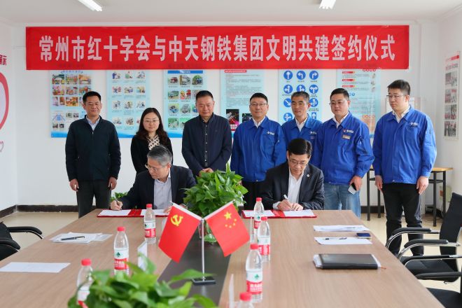 為全面貫徹落實黨的二十大精神,進一步推動中天鋼鐵集團全國文明單位創建,助力常州爭創“全國文明典范城市”,服務全市“532”發展戰略,推進全民自救互救能力工程,4月14日上午,常州市紅十字會與中天鋼鐵集團舉行戰略合作簽約儀式暨中天鋼鐵應急救護培訓基地揭牌儀式。常州市紅十字會領導戴亞東、季宏林、張青漣,中天鋼鐵集團及公司領導李軍、葉玉奎出席儀式。