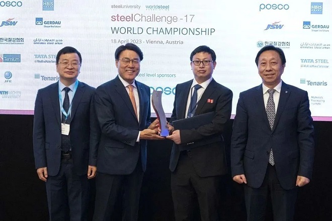 奧地利當地時間4月18日,世界鋼鐵協會在維也納公布第17屆模擬煉鋼挑戰賽世界總決賽比賽結果,河鋼職工韓鵬龍戰勝歐洲、美洲、西亞、東亞等賽區選手,榮獲職業組世界總冠軍,這是2017年以來河鋼榮獲的第五個職業組世界總冠軍。河鋼集團黨委書記、董事長于勇,世界鋼鐵協會會長、韓國浦項控股CEO崔正友,河鋼集團副總經理李毅仁出席頒獎儀式。