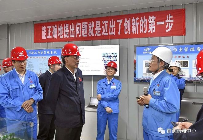 趙民革首先來到京唐公司鋼軋作業部榮彥明創新工作室,詳細了解創新工作室人才培養、攻關課題立項、運行機制及需要解決的問題等情況,叮囑大家要開闊視野、對標先進,在行業坐標系中找準位置,立足生產難點和重點問題開展技術攻關,把工作成效體現在提高質量和降低成本上,不斷提高產線競爭能力。