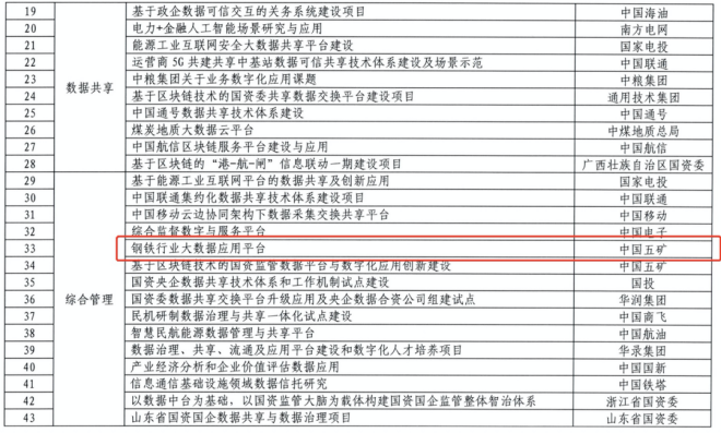 近日,國資委公布《國資央企數(shù)據(jù)共享技術(shù)體系和工作機制試點建設(shè)項目清單》,由中國五礦集團推薦的《中冶京誠鋼鐵行業(yè)大數(shù)據(jù)應(yīng)用平臺》成功入選。