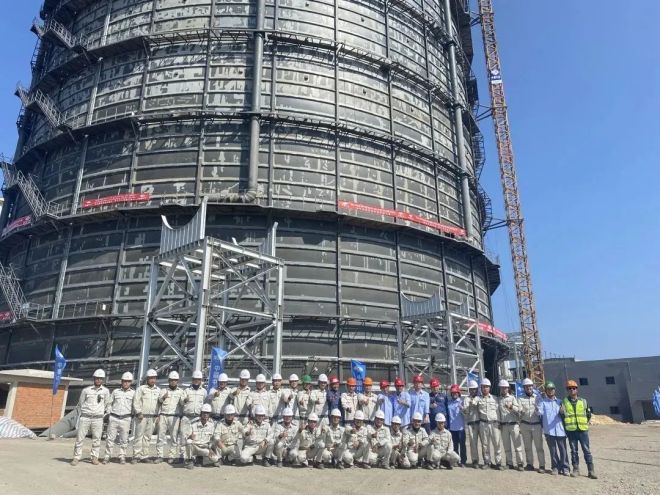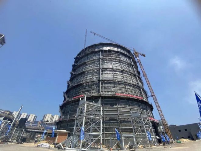 5月24日,由中冶賽迪總承包建設(shè)的越南和發(fā)榕橘15萬(wàn)立方米轉(zhuǎn)爐煤氣柜柜頂順利提升。該煤氣柜是中冶賽迪總承包出口越南的第2座轉(zhuǎn)爐煤氣柜,柜體直徑61.8米,柜體總高約71米,是中國(guó)企業(yè)目前出口海外最大柜容的轉(zhuǎn)爐煤氣柜。