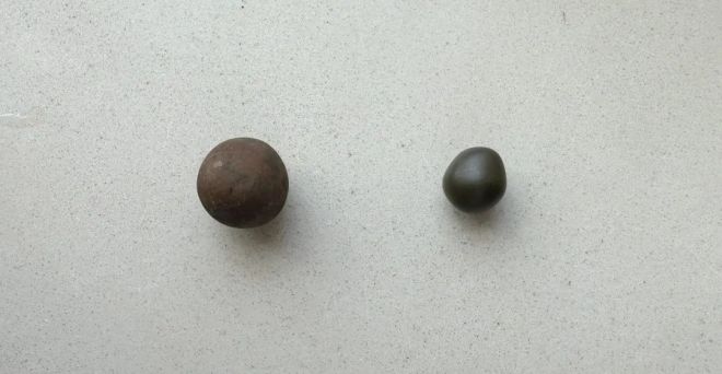 圖左是未使用的陶瓷球 圖右是實驗使用后的陶瓷球
