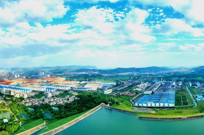 圖為從松山湖水庫俯瞰中南股份廠區(qū)