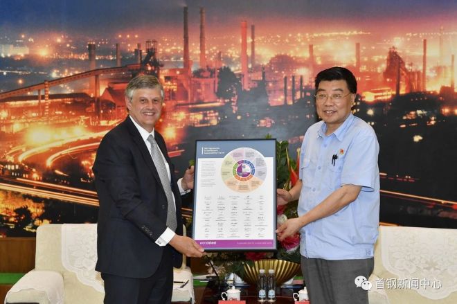 趙民革代表首鋼集團對埃德溫·巴松一行的到來表示歡迎,對世界鋼協一直以來的大力支持表示感謝,并介紹了首鋼堅持綠色低碳發展,扎實推動“雙碳”工作落實等方面的情況。他表示,首鋼將堅持把綠色作為企業發展的鮮明底色,繼續與全球合作伙伴攜手共進,為推動世界鋼鐵行業可持續發展作出首鋼貢獻。