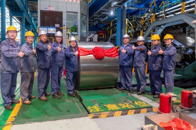 這是國內(nèi)0.1毫米寬幅超薄無取向電工鋼軋制的首次突破,也是全球鋼鐵行業(yè)首次實(shí)現(xiàn)1250毫米寬幅0.1毫米超薄無取向電工鋼的全流程生產(chǎn),標(biāo)志中國在寬幅超薄無取向電工鋼領(lǐng)域的研發(fā)和生產(chǎn)達(dá)到世界最高水平。