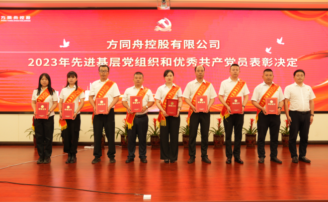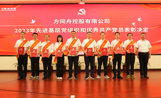 表彰大會在莊嚴的國歌聲中開幕。魏考增宣讀了《關于方同舟控股有限公司2023年度先進基層黨組織和優秀共產黨員表彰的決定》。此次共表彰先進基層黨組織6個;優秀共產黨員36名。受表彰的優秀共產黨員,他們是技術攻關研發人員、生產一線骨干人員、部門基層管理人員,他們在各自崗位兢兢業業、盡職盡責,成為廣大黨員、職工學習的榜樣。