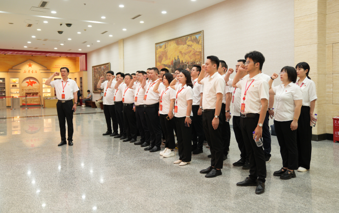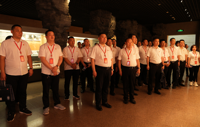 在八路軍太行紀念館,全體優秀黨員懷著無比崇敬的心情,回顧了老一輩革命家在太行山革命根據地的抗戰歷史,并重溫入黨誓詞,在黨旗下接受心靈的凈化和洗禮。