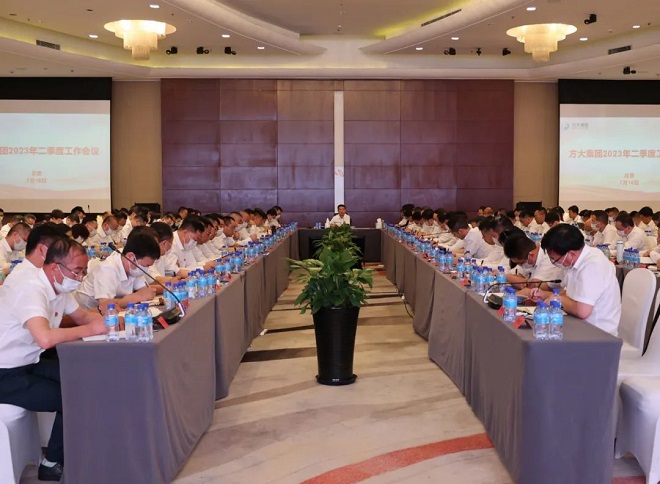 2023年7月16日,遼寧方大集團二季度工作會議在集團北京總部召開,董事局主席方威參加會議并作重要講話,強調集團上下要堅持黨建引領,切實按照習近平總書記系列重要講話的精神去貫徹、去落實、去執行,所有人都要講政治、講法律、講制度,按照市場規律經營企業,團結起來,敢于擔當,公平公正,本著“四個有利”,按照國家的戰略部署,去推動集團高質量發展。