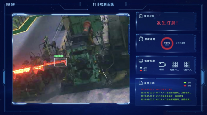 在長材生產(chǎn)過程中,鋼坯在粗軋咬入時打滑現(xiàn)象偶有發(fā)生,且隨著生產(chǎn)集控的推廣,發(fā)生鋼坯打滑時,操作員難以及時發(fā)現(xiàn)并處理。系統(tǒng)采用工業(yè)相機(jī)對粗軋入口區(qū)域進(jìn)行監(jiān)控,并基于自主開發(fā)的算法對鋼坯的咬鋼圖像幀進(jìn)行實(shí)時分析,快速檢測出鋼坯打滑情況,并及時通知生產(chǎn)人員進(jìn)行干預(yù),顯著降低操作人員的工作強(qiáng)度,提高異常處理的及時性。