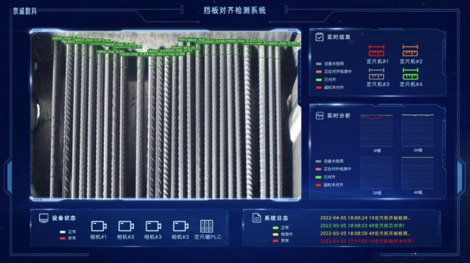 棒材生產(chǎn)過程中,在定尺擋板撞齊的工藝位置,由于無法進(jìn)行實(shí)時自動地對齊狀態(tài)檢測,導(dǎo)致剪區(qū)無法實(shí)現(xiàn)全自動運(yùn)行,必須依靠人工目測和現(xiàn)場指揮。系統(tǒng)通過機(jī)器視覺+AI的方式實(shí)時檢測棒材的對齊狀態(tài),確認(rèn)是否完成對齊,并將識別結(jié)果實(shí)時傳送給PLC控制系統(tǒng),實(shí)現(xiàn)對倍尺來料的自動剪切,提高剪切線生產(chǎn)節(jié)奏,降低由于頭部未對齊剪切導(dǎo)致的短尺問題,解決了制約該工藝段自動化生產(chǎn)的瓶頸問題。