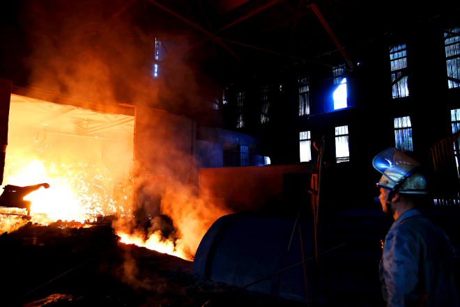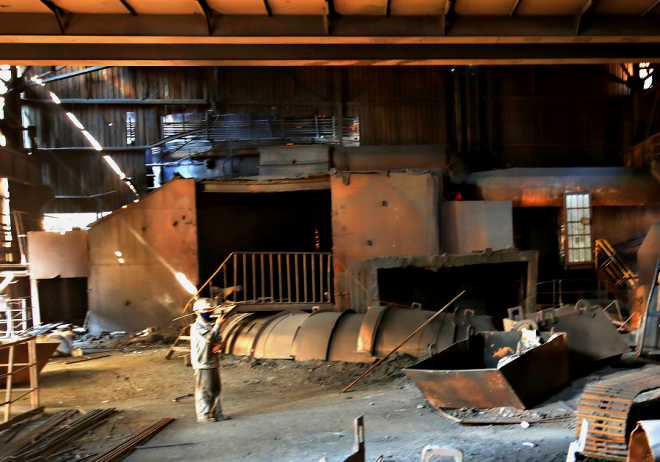 煉鐵廠老員工林紅軍深情的注視這最后一爐鐵。