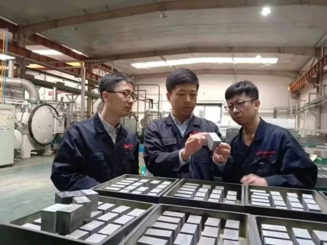 稀土磁性材料作為稀土元素最重要和最廣泛的應用領域,是稀土新材料大家族極其重要的一員。2022年,包鋼集團聚合力、匯眾勢,由北方稀土全面推進內部四家磁材企業整合重組——北方稀土磁材公司應運而生,這是包鋼集團應行業整合發展大勢做出的一項戰略性部署,重點布局打造“稀土金屬——合金鑄片——高端磁體——磁組器件——終端應用”的產業鏈條,賦能風力發電、新能源汽車行業高質量發展,對于提高稀土產品就地轉化率,延伸產業鏈、提高附加值具有重要意義。北方稀土磁材公司不負眾望,立足國家需要,借助發展合力,用好用足資源優勢和當地產業集群優勢,通過積極調整產品結構、提升技術裝備水平和產品品質,多管齊下拓展市場版圖,向著打造全球規模最大的稀土磁性材料合金工廠奮楫出發,現已具備年產9萬噸高性能釹鐵硼速凝薄帶、釹鐵硼磁體生產能力,產能位居全球第一。