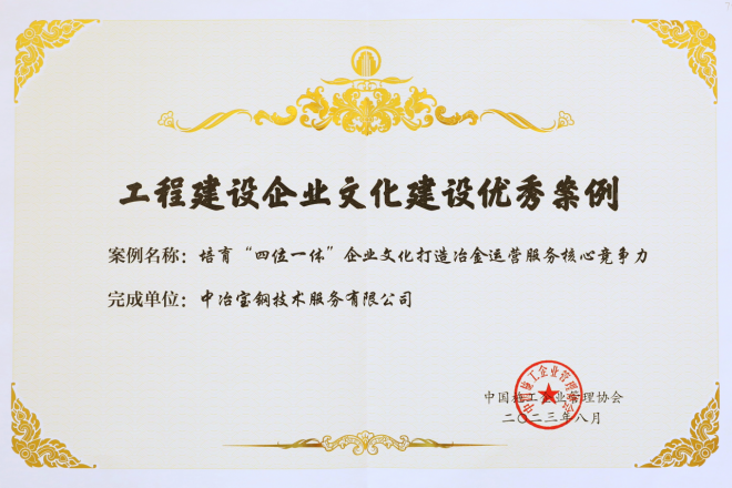 中冶寶鋼獲工程建設(shè)企業(yè)文化建設(shè)優(yōu)秀案例案例