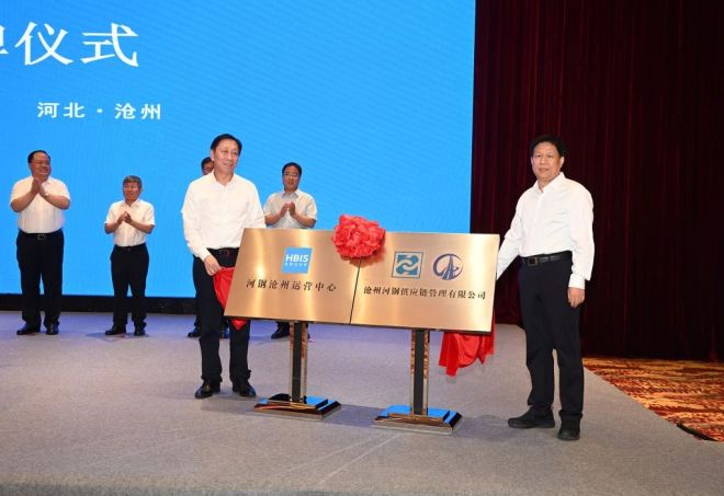 在熱烈的掌聲中,于勇、康彥民共同為河鋼滄州運(yùn)營中心、滄州河鋼供應(yīng)鏈管理有限公司揭牌。