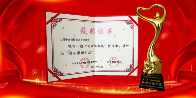 圖為“山西慈善獎”愛心捐贈企業(yè)獎狀獎杯