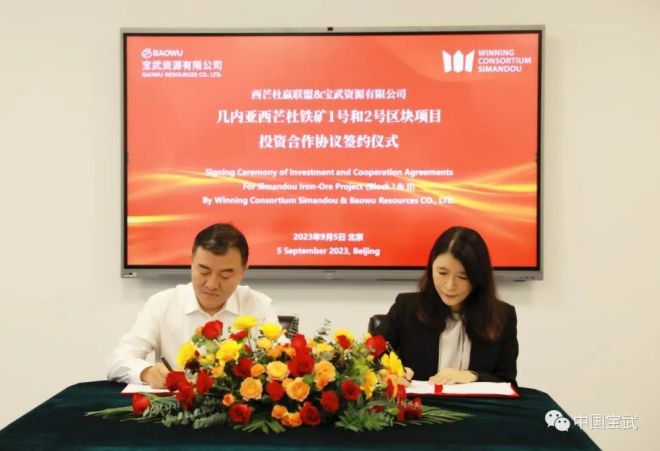 9月5日下午,寶武資源與贏聯盟控股公司(WCS)在北京簽署了西芒杜鐵礦北部區塊項目投資合作協議。中國寶武海外礦投辦主任、寶武資源黨委書記、董事長施兵和贏聯盟西芒杜項目首席執行官呂曉慧分別代表雙方簽約。