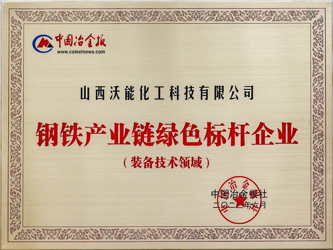 9月份,2023第四屆全國鋼鐵行業(yè)綠色低碳發(fā)展大會”在南京召開。會上,中國鋼鐵工業(yè)協(xié)會節(jié)能環(huán)保工作委員會、中國冶金報社發(fā)布2023“鋼鐵產(chǎn)業(yè)鏈綠色標桿企業(yè)”榜單并頒獎,集團沃能化工喜獲“鋼鐵產(chǎn)業(yè)鏈綠色標桿企業(yè)(裝備技術(shù)領(lǐng)域)”稱號。