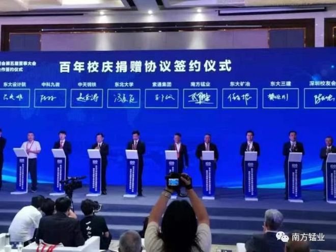 值東北大學百年校慶之際,南方錳業(yè)集團黨委書記、董事長、總經(jīng)理李維健作為東北大學校董受邀出席了大會。期間,東北大學推出了東北大學知名杰出校友榜,榜單共51人,李維健位列第18位。東北大學校董會召開了第五屆董事大會暨校企戰(zhàn)略合作簽約儀式,李維健繼續(xù)受聘為學校第五屆校董會成員。