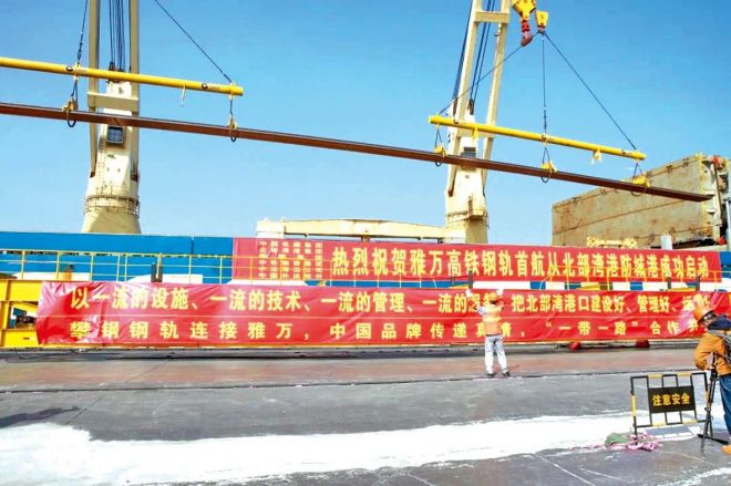 首批雅萬高鐵鋼軌啟航出海。