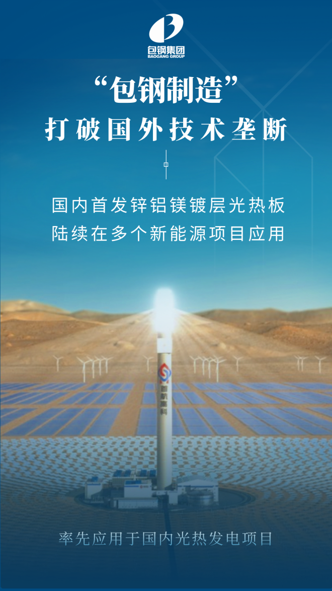 近日,記者從包鋼股份營銷中心獲悉,包鋼鋅鋁鎂鍍層光熱板已率先應(yīng)用于國內(nèi)光熱發(fā)電項目,并獲得了用戶高度認可,成功打破了光熱發(fā)電項目用鋼長期依賴進口的局面。包鋼成為國內(nèi)首家具備鋅鋁鎂鍍層光熱板批量生產(chǎn)的企業(yè),“包鋼制造”再次驚艷世界。